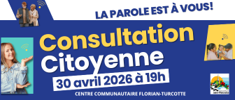 Dans le cadre de sa planification stratégique, le conseil municipal tiendra une consultation citoyenne le 30 avril 2026, à 19h au Centre communautaire Florian-Turcotte.